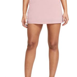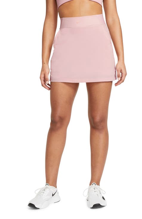 Short skirt in a stretch weave made from a cotton blend with a regular waist, concealed zip in one side and pleats with inset panels for added width. Unlined.